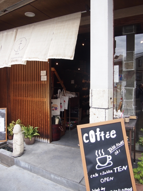 清水寺へ続くいつでも賑わう坂の途中にある"天"は、手作りの雑貨や陶器を販売している工房内にあるカフェです。マーブル模様で見た目も可愛い、看板メニューの抹茶レアチーズケーキ。ゼリーに近いような食感の柔らかな口溶け。ほんのり抹茶風味の爽やかな味わいです。クリームチーズ部分もおいしいですが、何より土台のクッキー部分がさくっさくで美味。クッキー生地に練りこまれた黒胡麻が良いアクセントになっています。ショップではハンドメイド雑貨や、カフェでも扱っている作家さんの陶器などが売られています。和の魅力たっぷりの可愛いアイテムをお土産にいかがでしょうか。
