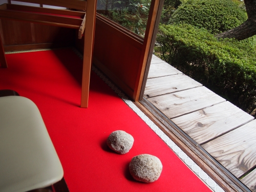 お抹茶を味わう場所は、なんと書院の5か所から自分の好きな場所を選ぶことができます。とっても嬉しい計らいですよね。筆者はこの悟りの間を希望しました。お茶菓子は生菓子で、餡を包んだわらび餅です。