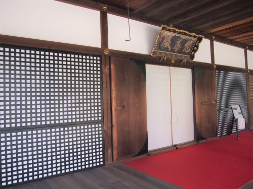 後光厳(ごこうごん)天皇やその息子後円融(ごえんゆう)天皇らの坐像が奉安されている「霊明殿」。坐像はお首の部分が抜けるように造られているそうです。等身大に近い大きさのため、非常事態にせめてお顔だけでも持って逃げられるようにという配慮からだそうです。