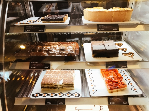 美味しそうなパイも販売しています。一番右のチーズパスティは2.7€(約300円)です。
