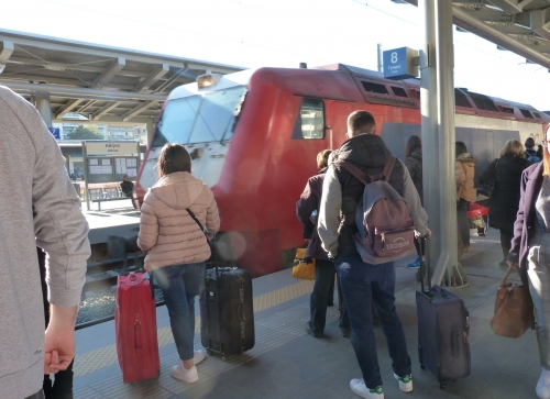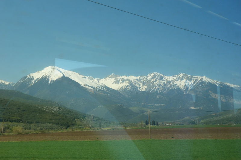 1日目は早朝7:20アテネ発の列車に4時間ほど揺られて、11:30にメテオラの麓にある町カランパカに到着予定です。ただし、列車は遅れることが多いのか、往路・復路ともに発車時刻は予定通りにも関わらず、到着時刻は予定時間よりも1時間ほど遅れていました。なお、アテネの駅までの送迎はツアー内容に含まれていないため、列車に乗り遅れないよう、違う列車に乗ってしまわないよう、早めの行動を心がけることがおすすめです◎