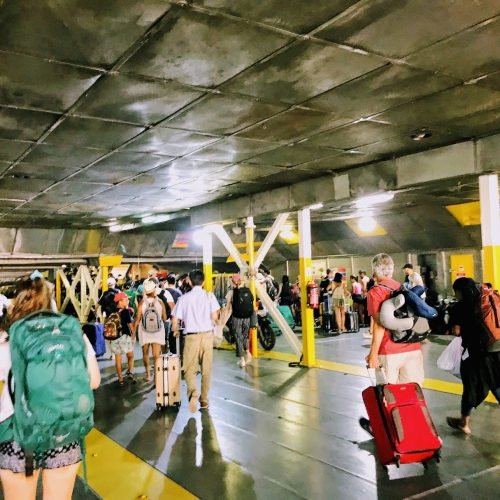 中に入ると、スーツケースなどの手荷物などを置きます。ここで注意してほしいのは、下船場所によって荷物を置く場所が違うことです。スタッフの方が、島の名前を叫んでいるので、それをよく聞いて指定された場所に置くようにしましょう。
