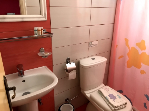 ベットやトイレ周りは可愛いピンク基調!設備は少し古いですが使用するには全く問題ありません。冷蔵庫はキンキンに冷えておりました。