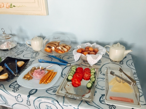 豪華なビュッフェ、というわけではなく、「サントリーニ島の家庭の朝ご飯」というイメージなので、家族に迎えられた気分で朝食を頂くことができます。