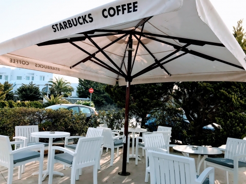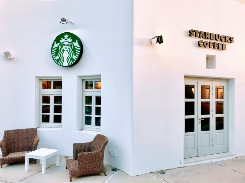 ミコノス島には、島に1つだけスターバックスがあります。それがスターバックスコーヒー・ミコノス店です。ギリシャの島で一番有名なのは「サントリーニ島」だと思いますが、意外にも、サントリーニ島にスタバはありません。