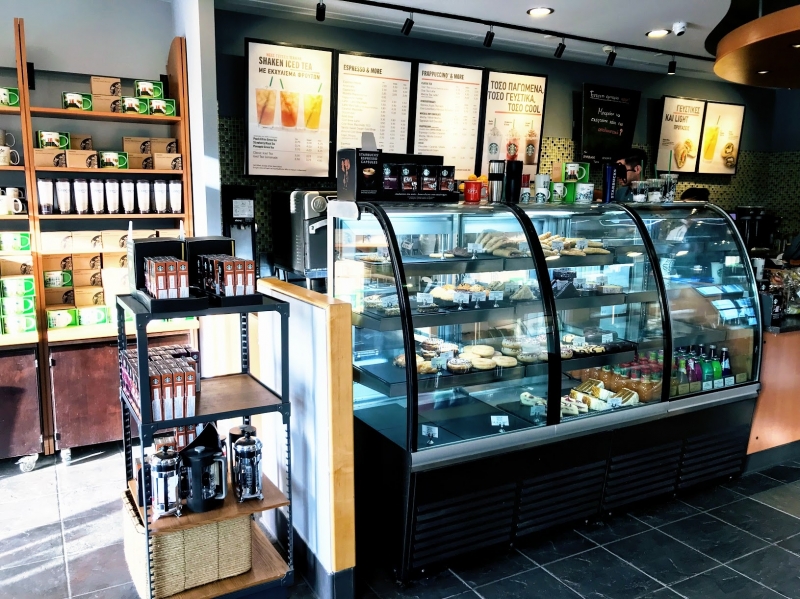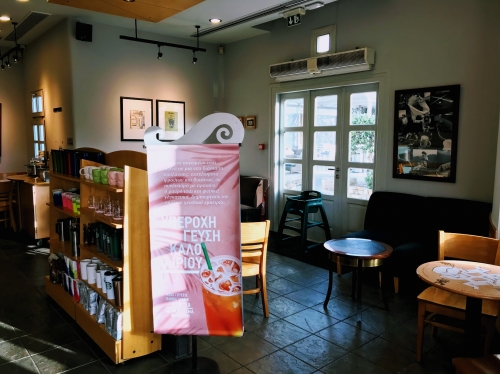 続いてスターバックス・ミコノス店の内観紹介です。内部は、日本でも見慣れた光景!とても清潔な店内です。