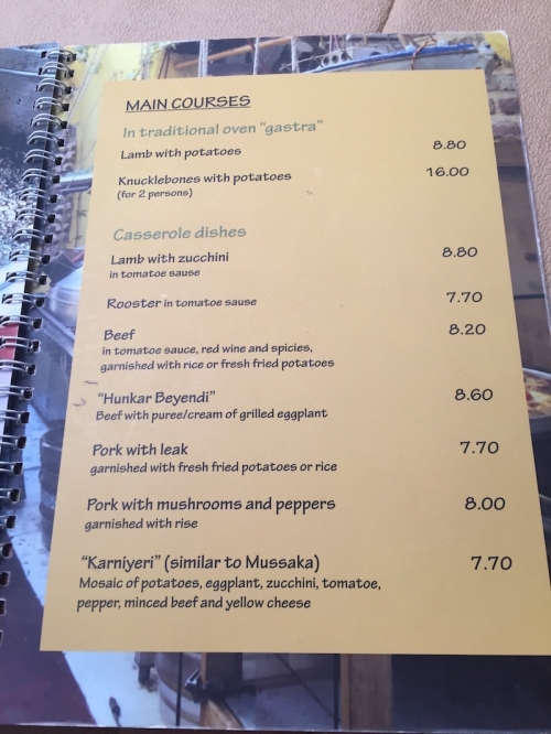 食事のメニューも、定番ギリシャ料理の具材や説明が記載されているのでとてもわかりやすいです。
