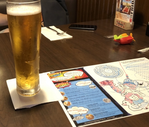 紙のランチョンマットの裏は、料理が出てくるまでじっとしていられない子供のために塗り絵、またキッズメニューも3種類ほどあります。