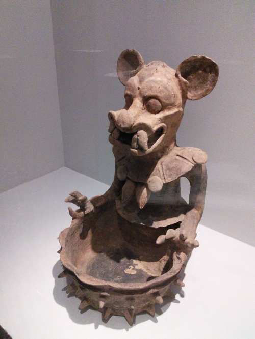 遺物は保存状態も良く、ティカル遺跡内にある博物館よりずっと充実しています。マヤ文明で発掘されるこれらの遺跡は、顔の表情や、身体の状態に思わず「えっ?」と笑ってしまうような個性的な物が多く、「何に使ったのだろう?」「これを、居間などに飾るのか?」と思わさせるような不可解な置物などもあって、一つ一つが興味深いです。