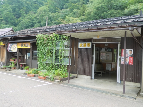 駅名のとおり、日帰り温泉施設「子宝の湯」と隣接する駅です。ホームにある自動扉をくぐると温泉施設という、雨天時でも傘いらずの立地です。