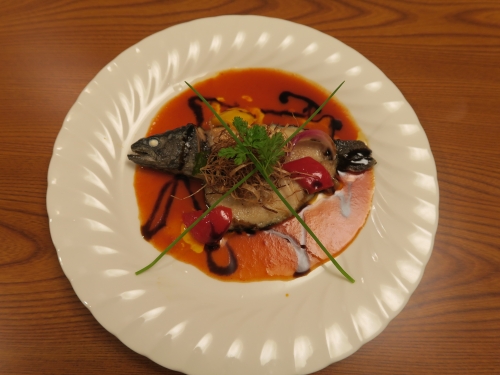 別館に宿泊の場合、食事は客室内のダイニングルームで頂きます。地の物を生かした料理です。派手さはないものの、どこか懐かしくあたたかい感じがします。