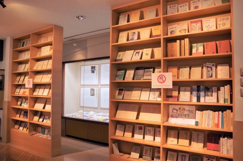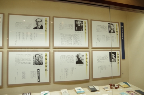 2階には、萩原朔太郎の人生年表や今までに生み出してきた作品などと、前橋にちなんだ詩人の紹介や書籍が並びます。