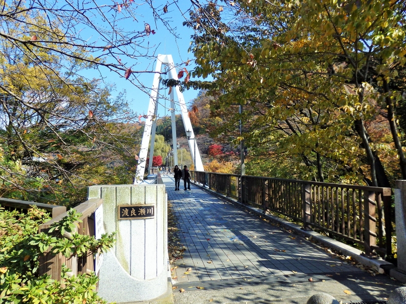 駅のすぐ近くにあるはねたき橋からは、高津戸峡をながめることができます。