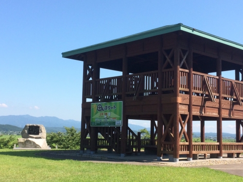 公園を奥に進むと、まわりの自然と調和した木造の展望台があります。展望台からは秋田の美しい自然はもちろん、広大な田んぼアートをを見渡すことができます。展望台は新しくしっかりとした作りになっているので、安心して上がれますよ。