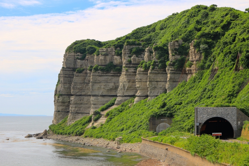 乙部町からせたな町方面へ向かう途中、ソーランラインを走っていると地層がハッキリと分かる断崖を目にします。これは館の岬と呼ばれる崖で、東洋のグランドキャニオンとも呼ばれているそうです。方向によっては走行中に眺めることができるので、ぜひ景色を楽しみながらドライブしてみてください。