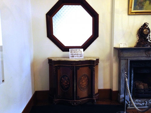 海外から取り寄せた高級ガラスや、調度品をふんだんに使用している洋室も見ごたえがあります。この洋室は大切なお客様を接待するためのお部屋で、美智子皇后陛下のご両親、正田ご夫妻もお見えになり、このお部屋で接待した記録が残っているそうです。