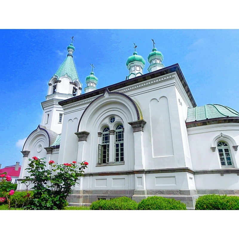日本初のロシア正教会聖堂で真っ白の壁と緑の屋根のコントラストが美しい。地元の人々には「ガンガン寺」と呼ばれ親しまれており、土曜日の午後17時と、日曜日の午前中には鐘の音が鳴り響きます。「日本の音風景100選」に選定されている美しい音色です。