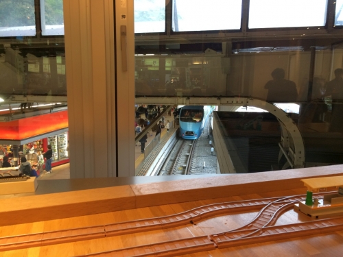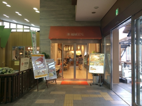 箱根湯本駅、小田急線改札のすぐ横という便利な場所にある「箱根カフェ」。箱根登山鉄道の模型もあり、電車好きのお子さんもきっと喜ぶはず!