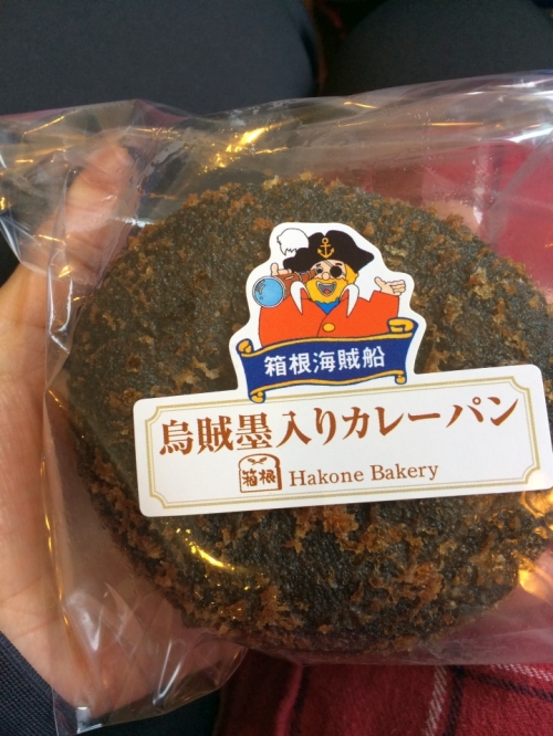 駅1階で販売されているイカスミ入りの「海賊船カレーパン」は、桃源台駅限定賞品。船では飲食もできるので、座ることができれば座席でいただくこともできます。湖からでしか見られない観光スポットの風景もお見逃しなく!