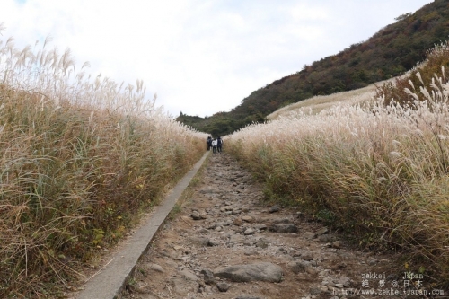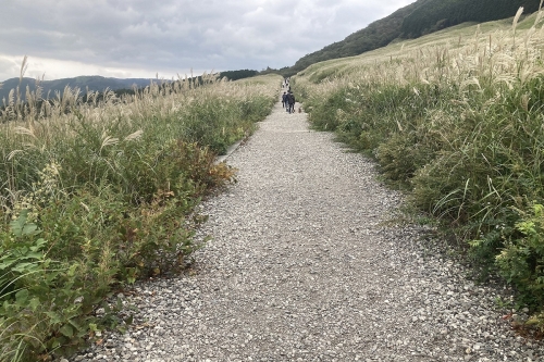 ススキ草原には一本道があります。この一本道は広大なススキ草原を突き抜ける真っ直ぐな道で、約700mあります。