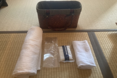 ちなみに部屋にはタオルやビニール袋などが1つになっている湯かごがありますので、こちらも利用すると便利です。
