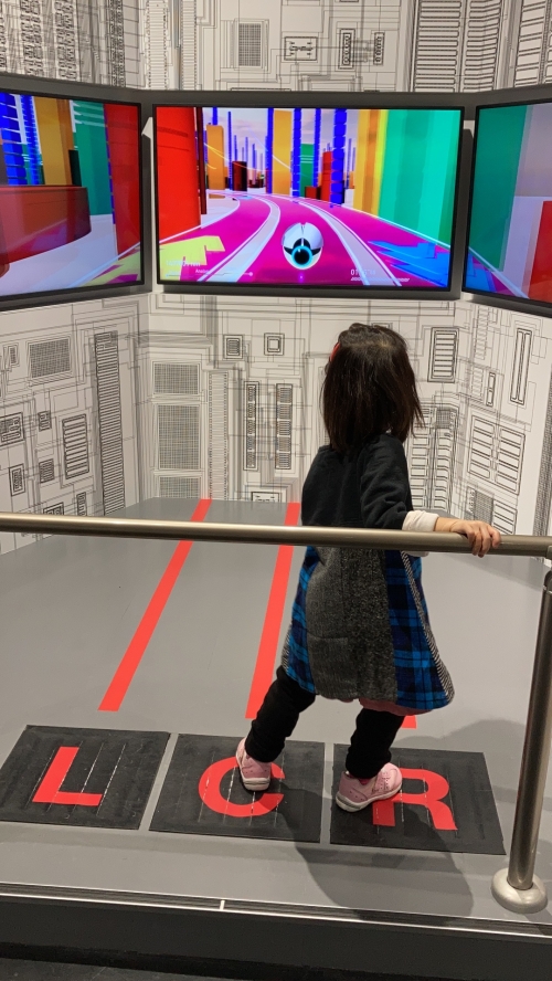 中には、テレビで見たことのあるような、スクリーンに合わせて体を動かして遊べる展示や、実際に存在する自動車・バイクを使って運転シュミレーションをできる展示などがあり、全身を使って遊んで学べます。
