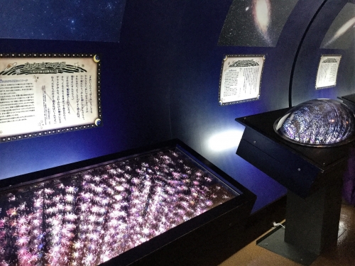 「賢治の教室」は、賢治の童話創作に影響を与えた「植物」「動物」「星」「鳥」「石」に関する展示施設です。それぞれのテーマが5棟のログハウスに分かれて展示されており、興味があるテーマに絞って見学するのもOK。ログハウスのうち1棟はお土産ショップになっています。