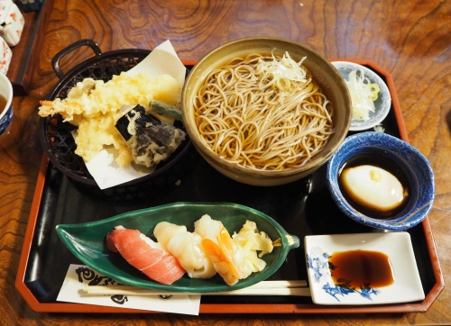 ここではやぶ屋ならではのセットが必見です。「賢治セット」は天ぷらそばと三ツ矢サイダーのセットで、まさに宮沢賢治のスタイルそのままの、気分もアガるメニュー!「ブッシュセット」は、そばと天ぷらにお寿司と小鉢もついた豪華セット。ブッシュも宮沢賢治の言葉「ブッシュへ行く」からきており、ブッシュ(英語)=やぶ、つまり「やぶ屋へ行く」という意味のものです。