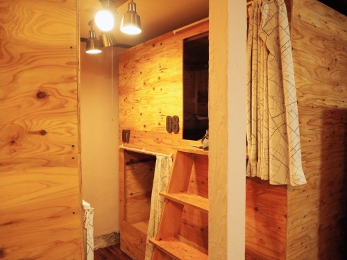 ドミトリーは一泊3,300円(冬季は+200円)。ベッドはオーナーやその仲間たちの手づくりなのですが、そうとは思えない完成度の高いつくりで、夜はゆっくりと休めます。ラウンジにはセンスあるラインナップの書籍のほか、花巻や岩手にまつわる本が並び、地元の方と交流できる場にもなっています。
