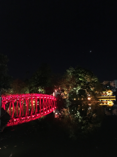ホアンキエム湖はハノイ市街地の中心地にあるため、観光する際は湖を目印に動くこともおすすめです。ちなみにホアンキエム湖は一周約30分程度で歩くことができます。夜になるとライトアップされているので、夜景鑑賞もおすすめです。