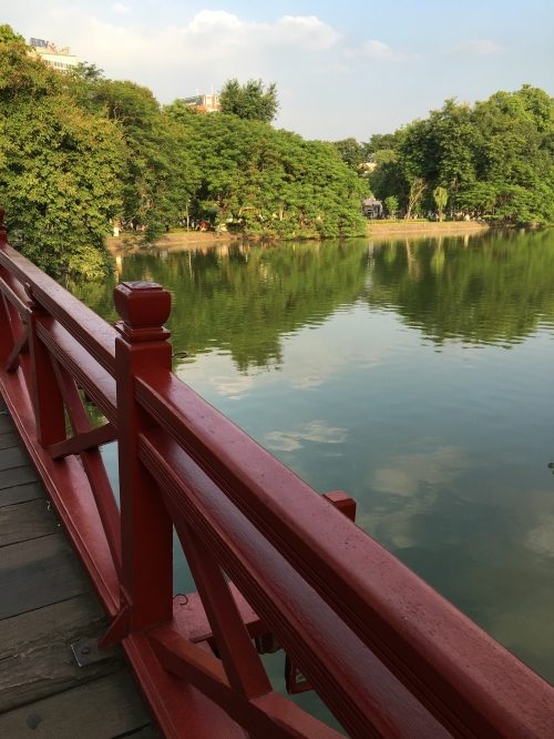 ハノイの中心地にあるホアンキエム湖は、絶好のお散歩スポットです。湖の周りが遊歩道になっており、道を歩いているだけで癒されます。湖畔にはベンチもあります。