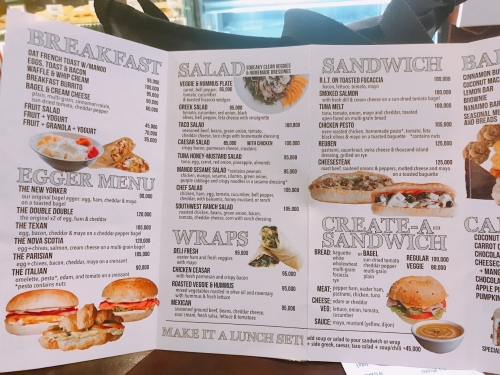 こちらは、好きな具材をはさむことのできるベーグル!値段は100,000VND(≒500円)で、中にはチェダーチーズ・パストラミポーク、レタス・トマト、キュウリなどを挟んでもらいました。