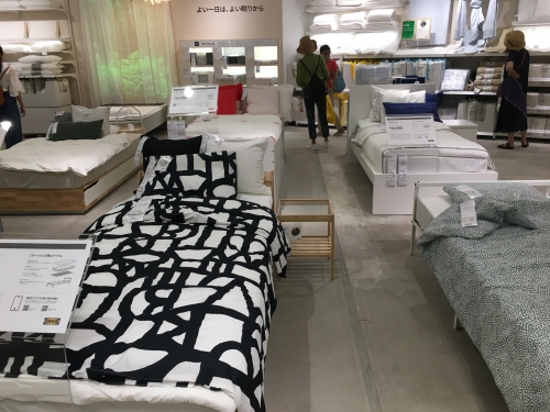 1階をさらに奥へ進むと、イケア名物になっている部屋を再現した商品展示のルームセットもあります。都市部のライフスタイルに合わせたインテリアを提案しており、一人暮らし向けの部屋や限られたスペースに彩るIKEA商品を陳列。早速自分の家でも試したくなる部屋づくりの数々で、見ているだけでもワクワクしますよ。