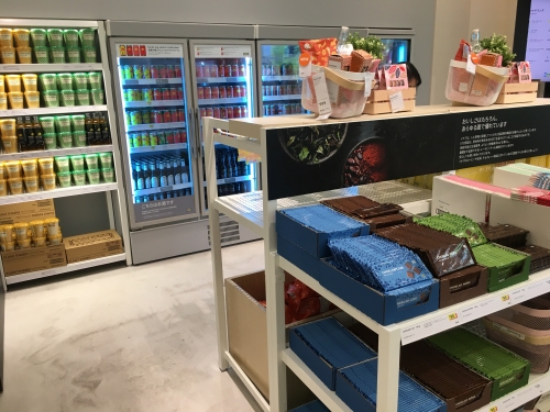 入り口から右方向にFIKAと呼ばれるテイクアウト専用カフェ&ベーカリーと、IKEA初の試みであるスウェーデンコンビニが配置されています。今話題の低アルコールビールやカップ麺の他、チョコレートや袋入りスイーツなど、パッケージも可愛い商品が多数並べられています。