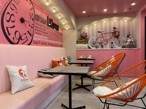 可愛いピンクの外観に、白文字で「LiQumu」と書かれた店名が目印。さっそく入店してみましょう♪