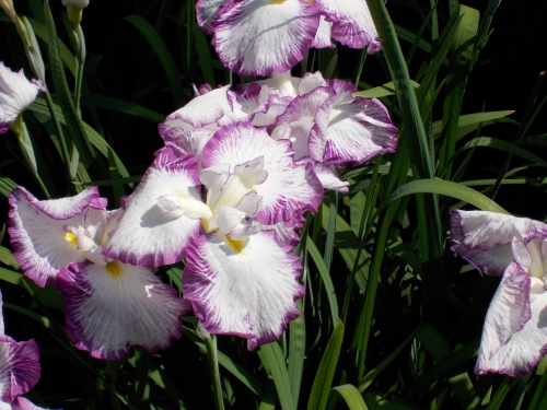 花菖蒲を近くで見ると品種によってそれぞれ形や色が違っています。株ごとに品種名が表示されていますので、どうやって名付けたのか、なぜそんな名前になったのかを想像しながら鑑賞するのも楽しいかもしれません。