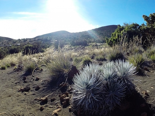 マウナ・ケア山頂へは車で気軽に行けるため、体を標高に慣れさせつつ進むことが大切です。こちらにはトイレや売店がありますので、山頂に行く前に休憩を取るようにしましょう(山頂にトイレはありません)。またここでぜひ見たいのが、奥にある銀剣草(シルバーソード)の保護区域。この植物は、ハワイ島マウナケアとマウイ島ハレアカラの標高2,100mから3,700mあたりの、噴石地帯にだけ生息しているハワイの固有種です。その名の通り、剣のように鋭くとがった銀色の葉は神秘的な輝きをしています。