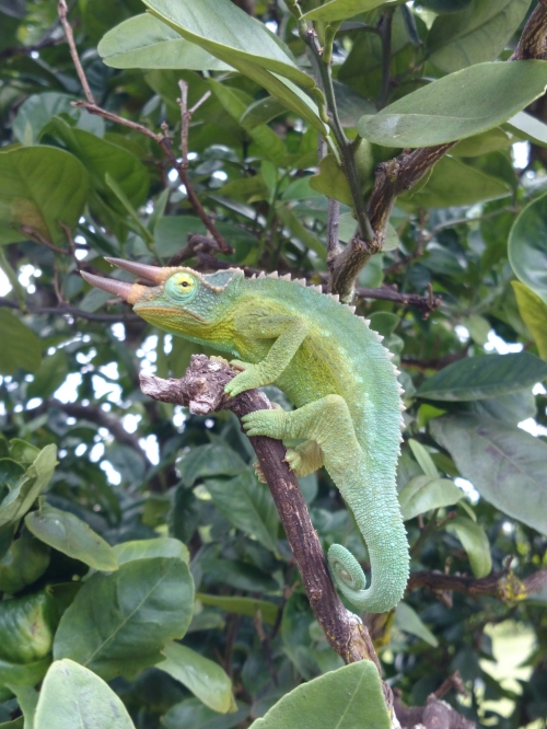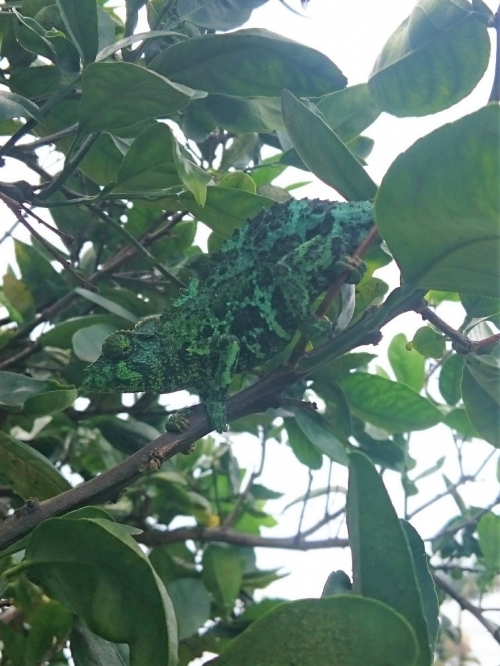 そんな美味しい果実に引き寄せられてか、生き物もたくさん住み着いています。筆者が訪れた際は、ショップ近くのオレンジの木にはカメレオンがいました。写真はそれぞれオスとメスのカメレオンです。擬態しているのでわかりにくいかもしれませんが、訪れた際にはぜひ探してみてくださいね。日本ではなかなか見られない植物や生き物を、近くでじっくり観察できるのも魅力です。