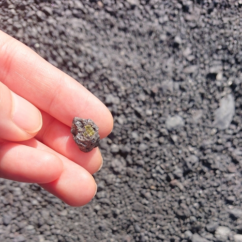 溶岩の中からカンラン石を探そう!