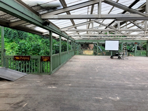 まずはパンフレットを貰ってセルフガイドの園内ツアーを楽しみましょう。収穫された後の豆の皮を剝く機械からはじまり、太陽乾燥を行うデッキや豆の選別を行う機械など実際に作業が行われている様子を見学できます。