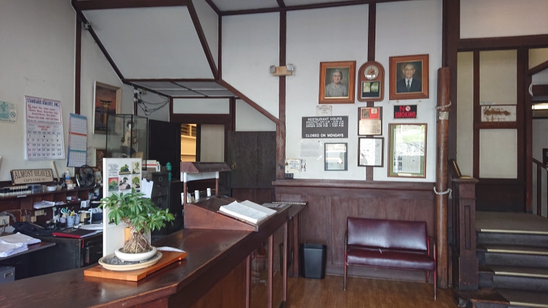 フロントには日本人形や盆栽が飾られており、ハワイと日本の文化交流の軌跡が感じられます。駐車場とWi-Fiは無料で使えます。