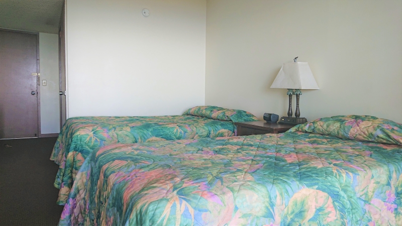 部屋は一泊素泊まり75ドル(約8,100円)~で、ベッド、トイレ、シャワールーム、ドレッサーとクローゼットがあるシンプルな部屋です。冷蔵庫や湯沸かし器、電子レンジなどの電化製品はありません。ランプや机に年季を感じるものの、トイレやシャワールームは清潔に保たれています。