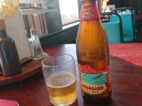 写真:トラベルライター 中庭の小さな日本庭園 |  写真:トラベルライター たくさん遊んだ後のビールは最高!! | |