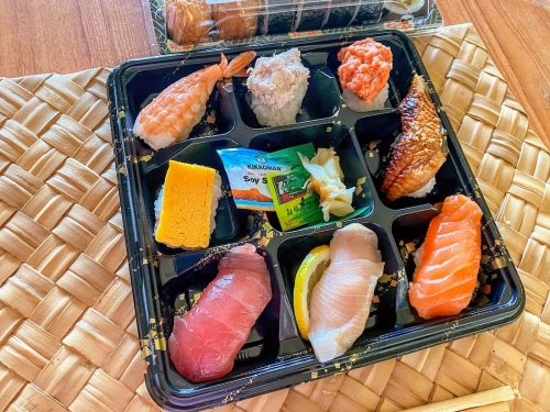 お鮨屋さんが経営するだけあり、新鮮なネタが揃った寿司コンボはおすすめ。お稲荷さんや巻き寿司などのコンパクトなお弁当は、帰りの便のフライト用に購入しておくと機内でもおいしい食事を楽しめますよ。