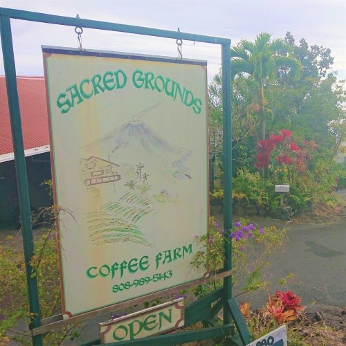 グリーンウェル・ファームから、さらにハワイ・ベルト・ロードを南下すること5分のところにあるのが、セイクレッド・グロウン・コーヒーです。セイクレッド(sacred:神聖な)の意味の通り、教会の面持ちのような佇まいが特徴的です。