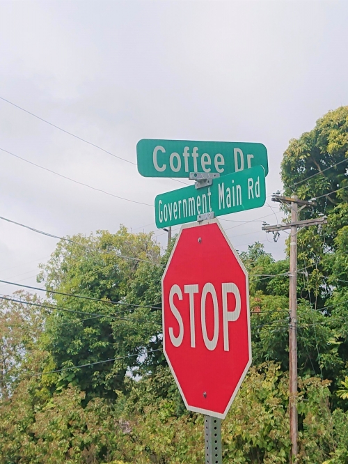 セイクレッド・グロウン・コーヒーとコーヒー・シャックの間に、主要道路であるハワイ・ベルト・ロードを外れて、ガバメント・メイン・ロードに入ると「コーヒー・ドライブ」という道があります。アメリカでは道路名が住所になるので、この通りに住む人たちの住所には「コーヒー」という言葉が入ります。コーヒー好きにはうらやましい限りですね。
