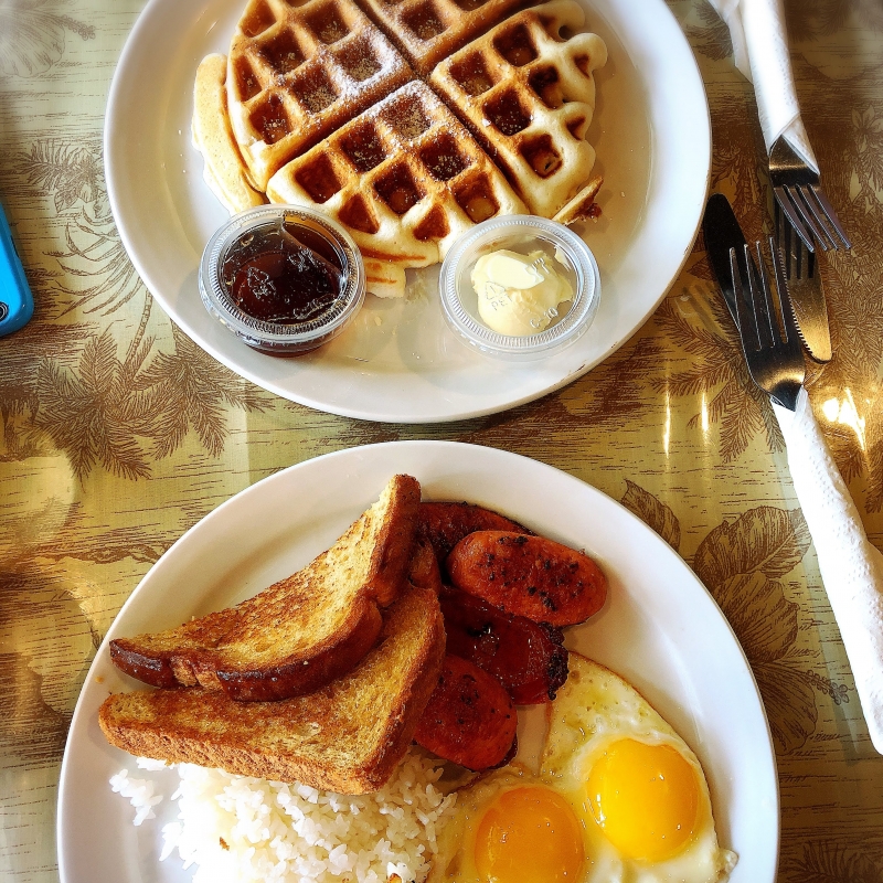ここはとにかく行列の絶えない人気店なので、開店時間に合わせて行くのがおすすめ。ハワイの朝ごはんに欠かせないスパムやソーセージ、パンケーキなどの朝食メニューを比較的リーズナブルな値段で楽しめます。
