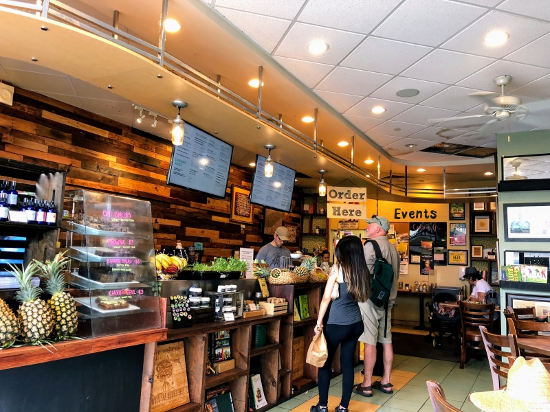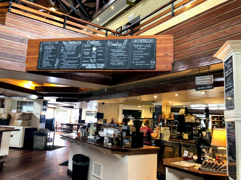 レストランの手前にはカフェセクションがあり、お腹が空いていない場合はここで飲み物やペイストリーのテイクアウトもできます。カフェ席も海の真横に用意されているため、コナ散策の一休みに立ち寄れば、贅沢に海を眺めながらのカフェタイムを楽しめます。
