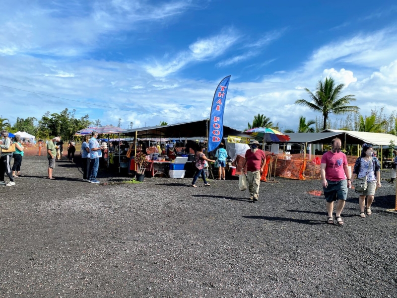 ヒロの街を南下し、130号線に乗り換えプナの手前にあるのが「マクウ・ファーマーズマーケット(Maku'u Farmer's Market)」。辺鄙な場所にあるのにも関わらず、150前後のテント数が立ち並び、かなりの賑わいを見せるローカルに人気の大型マーケットです。