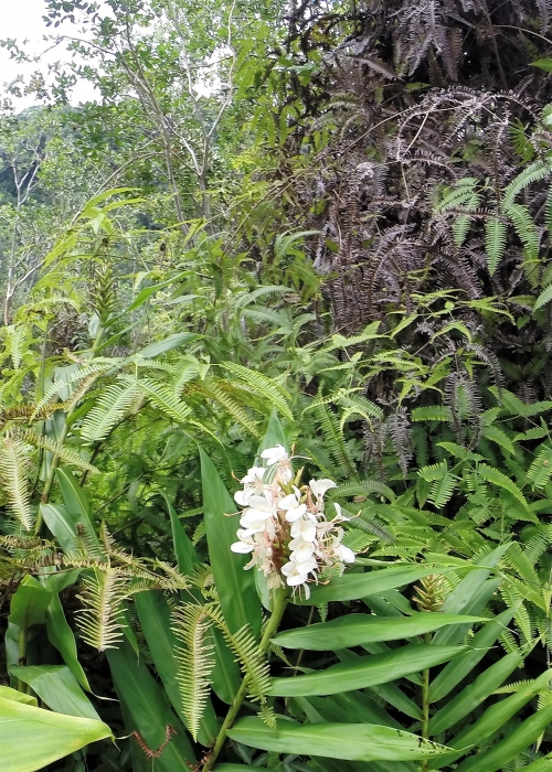 遊歩道にはいろいろな南国植物を見ることができます。ホワイトジンジャーの花が咲く辺りは甘い香りで満たされており、とても気持ちよく歩くことができます。